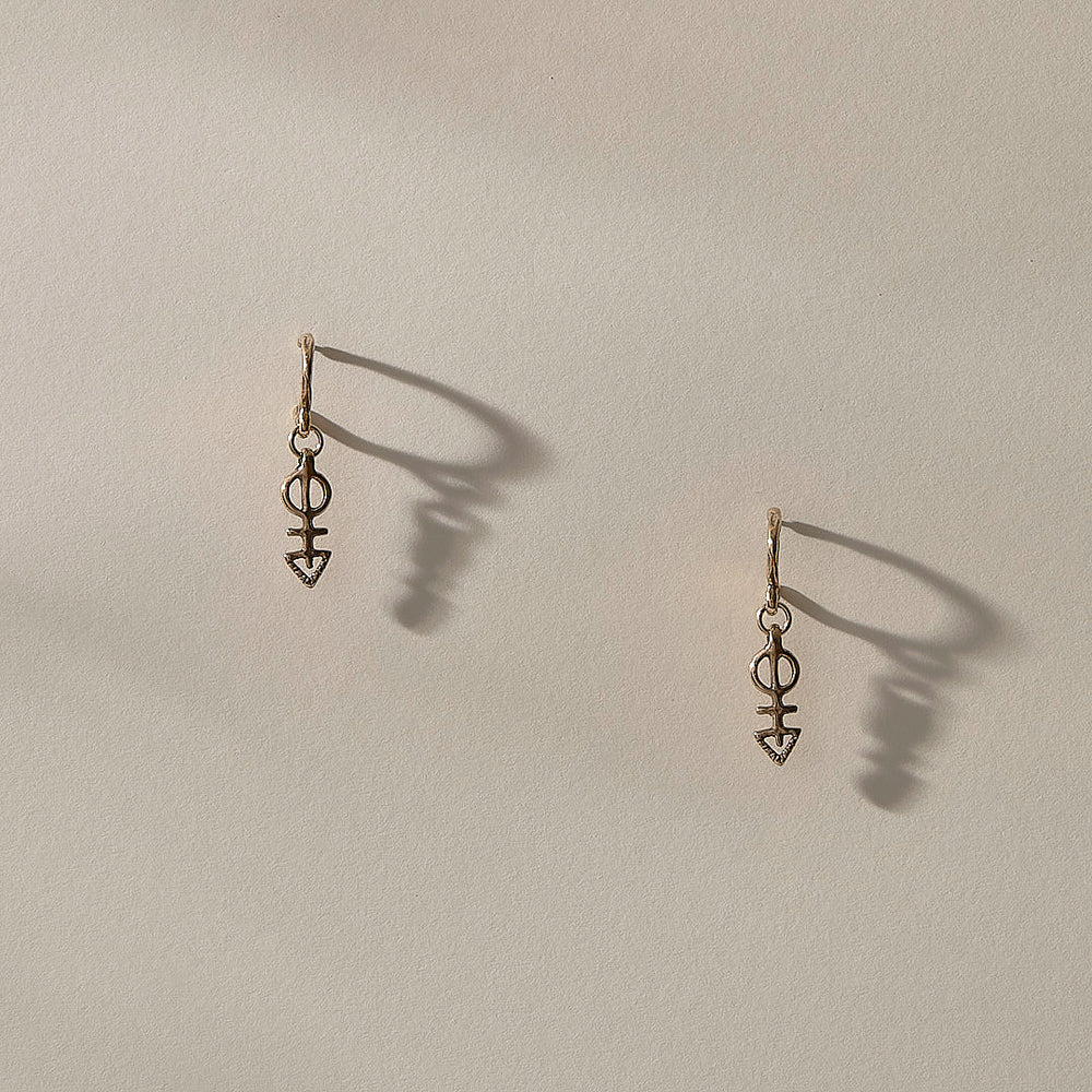 Created as talismans of empowerment, these earrings carry the ancient symbolism of cosmic balance and elemental magic. The charm weaves together the alchemical symbols of earth, water, fire, and spirit, grounding intention while opening space for transformation.
