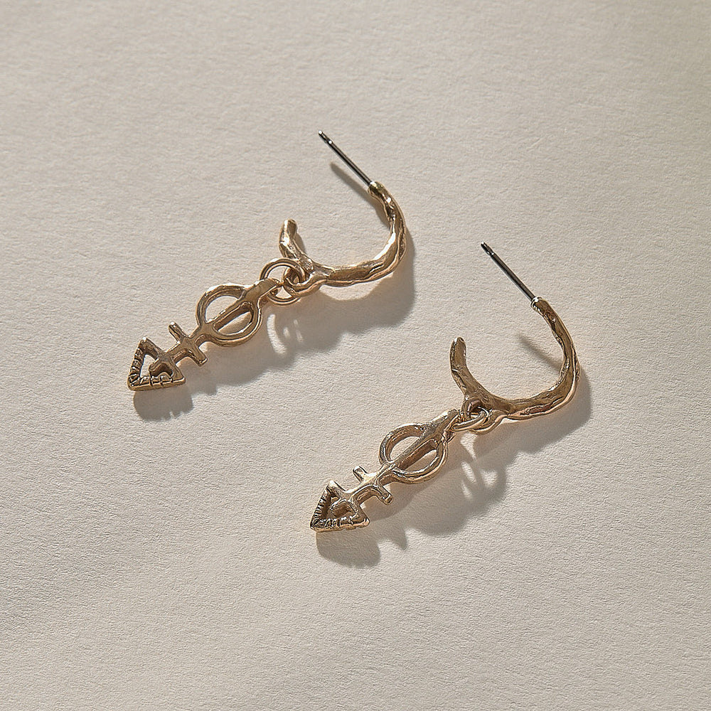 Our beloved Ma’at amulet, now reimagined as delicate bronze hoop earrings.